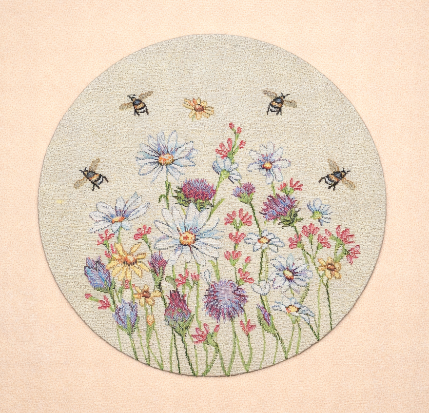 Suport farfurii crem cu flori de câmp și albinuțe.