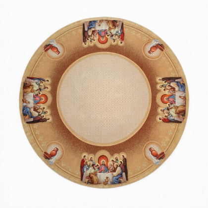Suport din țesătură tip goblen pentru farfurii cu Cina cea de Taină pe fond bej.
