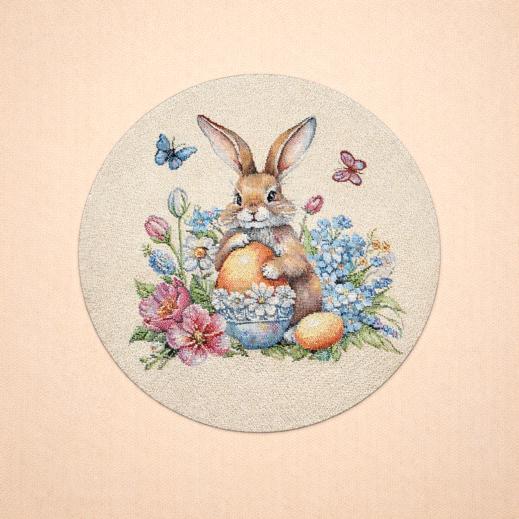 Suport goblen farfurii cu iepuraș.