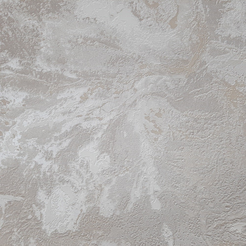 Este un tapet gros, texturat în tonuri de gri argintiu și ivoar pe suport de vinil.