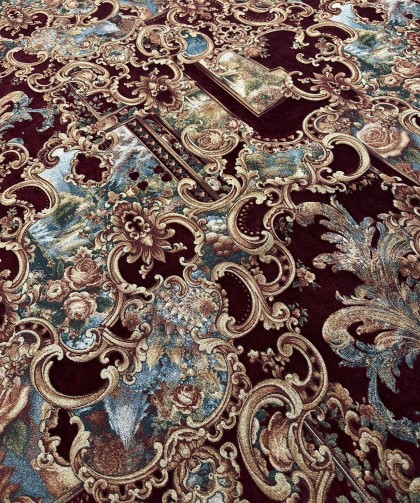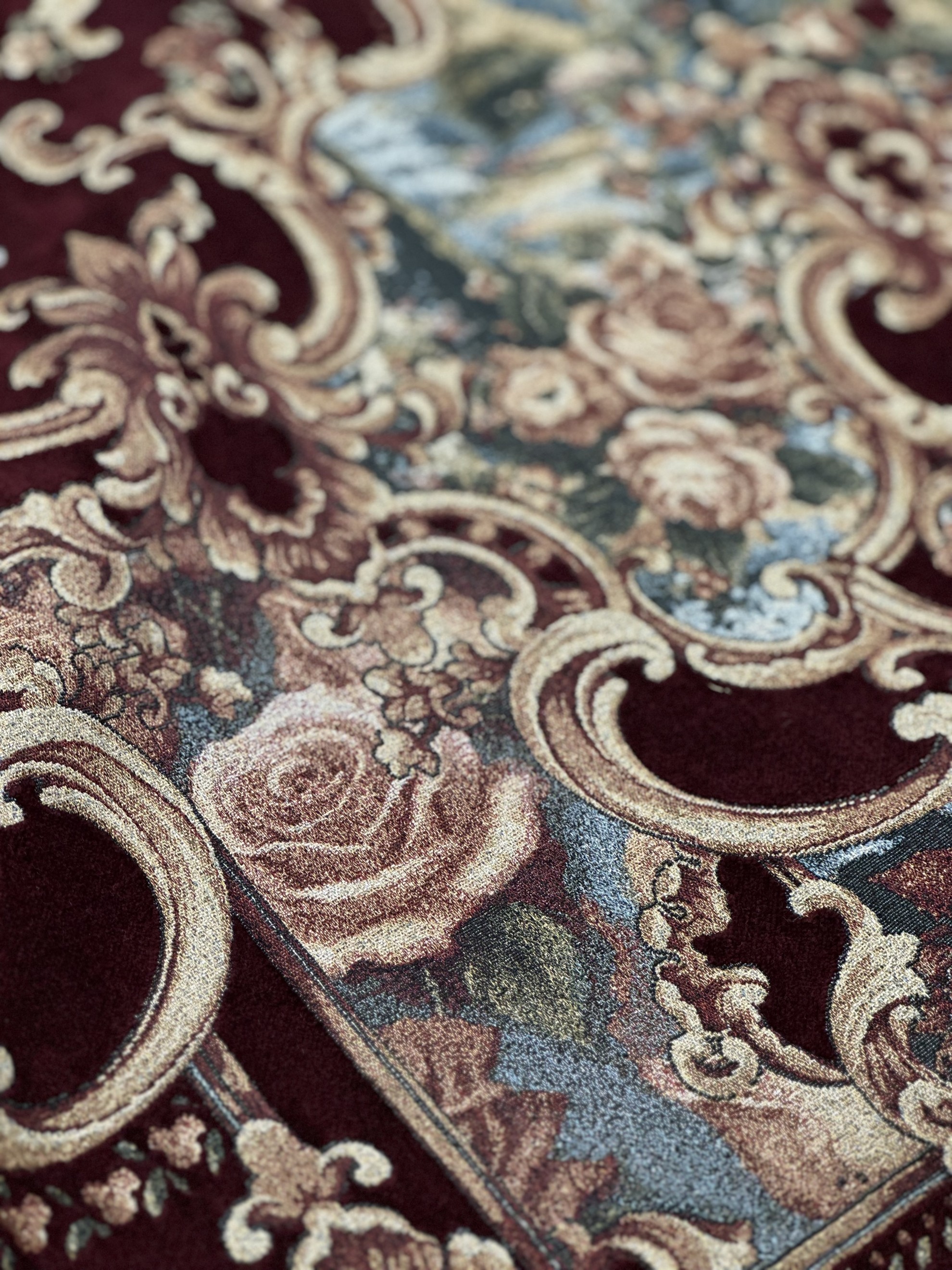 Este o țesătură deosebit de elegantă cu model 3 D din catifea cu goblen floral cu stilizări baroc. Conține și fire de lurex, lucru care dă un plus de eleganță discretă.