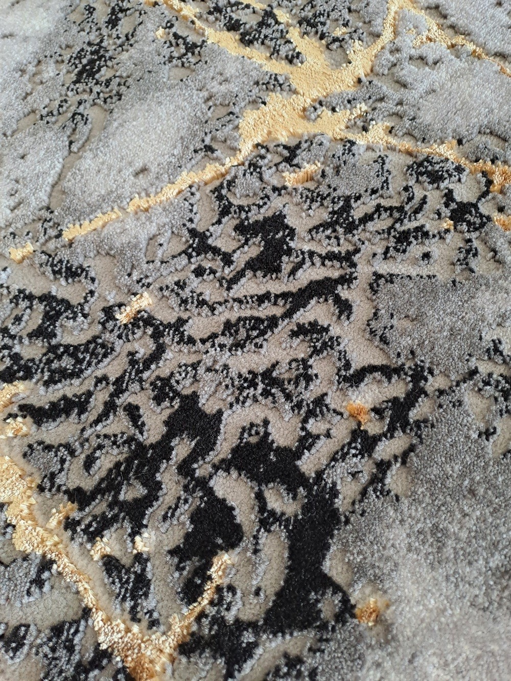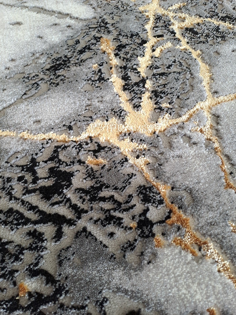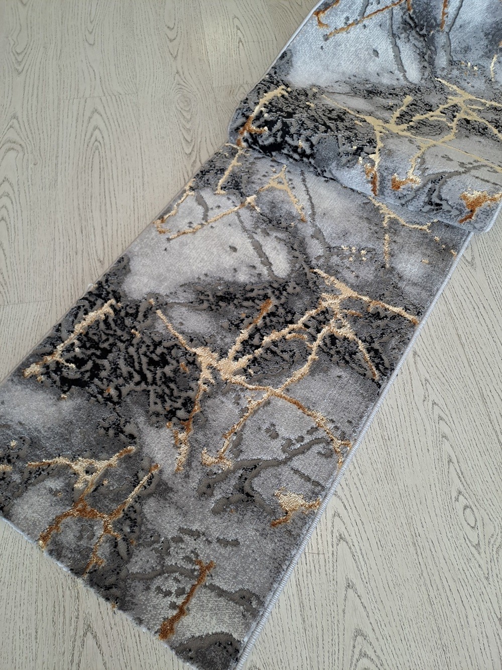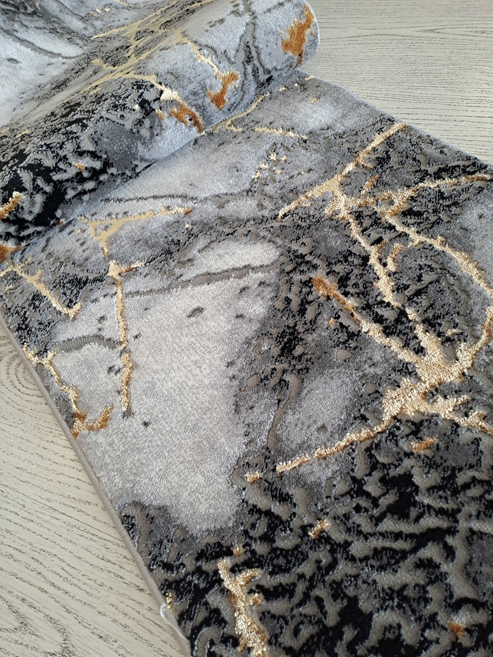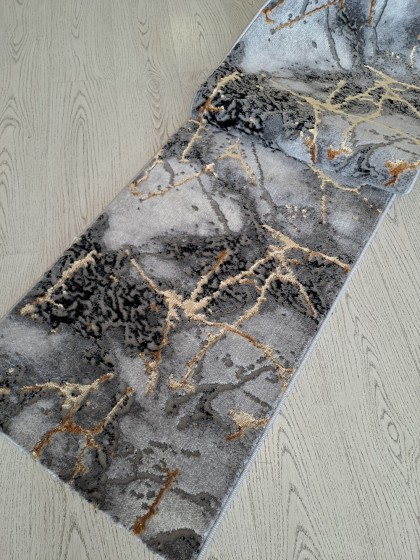 Traversă covor la metru gri în degrade cu nervuri aurii
