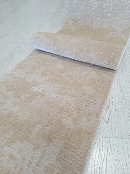 Este o traversă covor la metru gri în degrade cu nervuri aurii.
