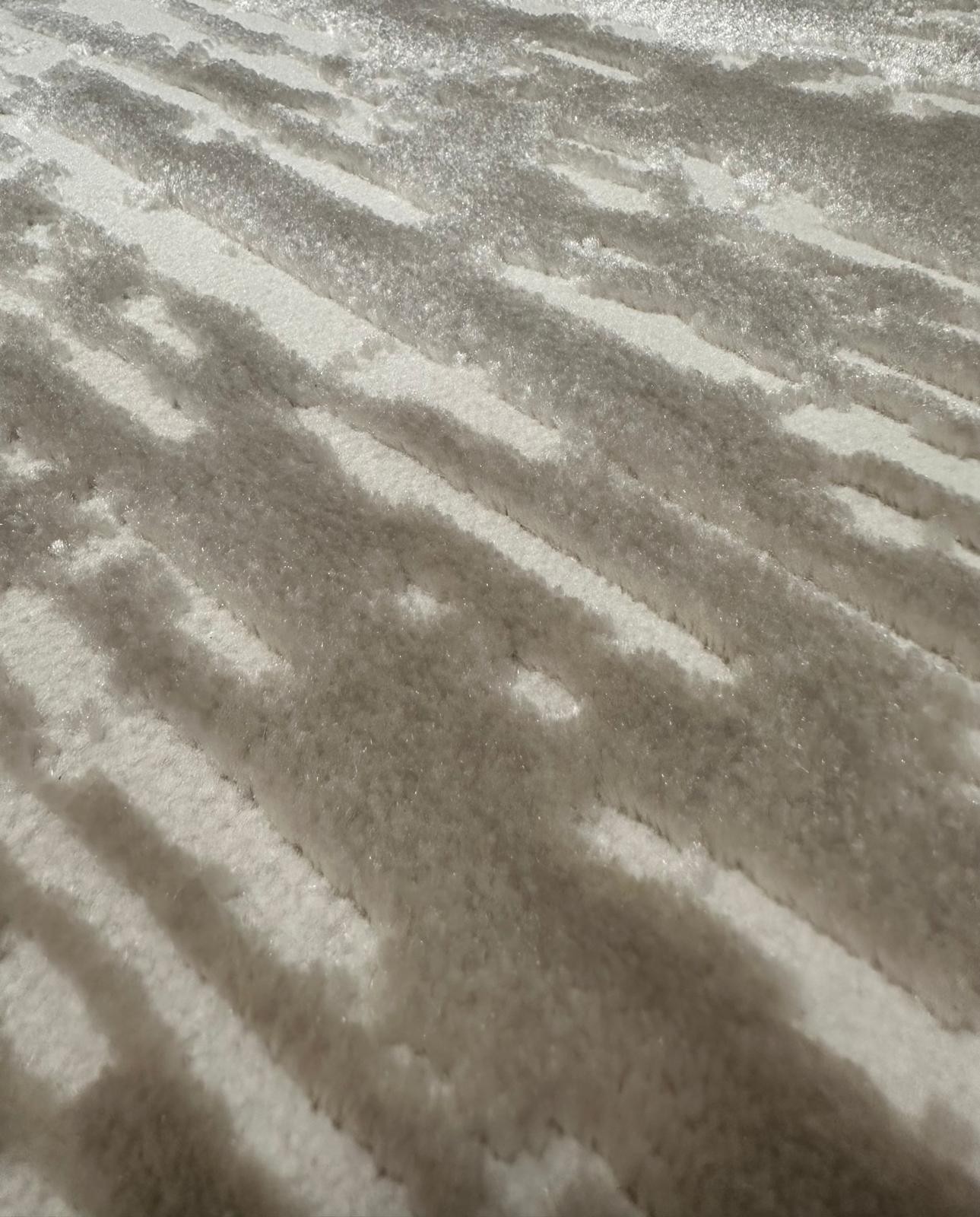 Are fondul ivoar, iar modelul este bej texturat în relief.