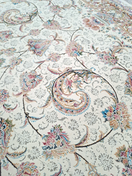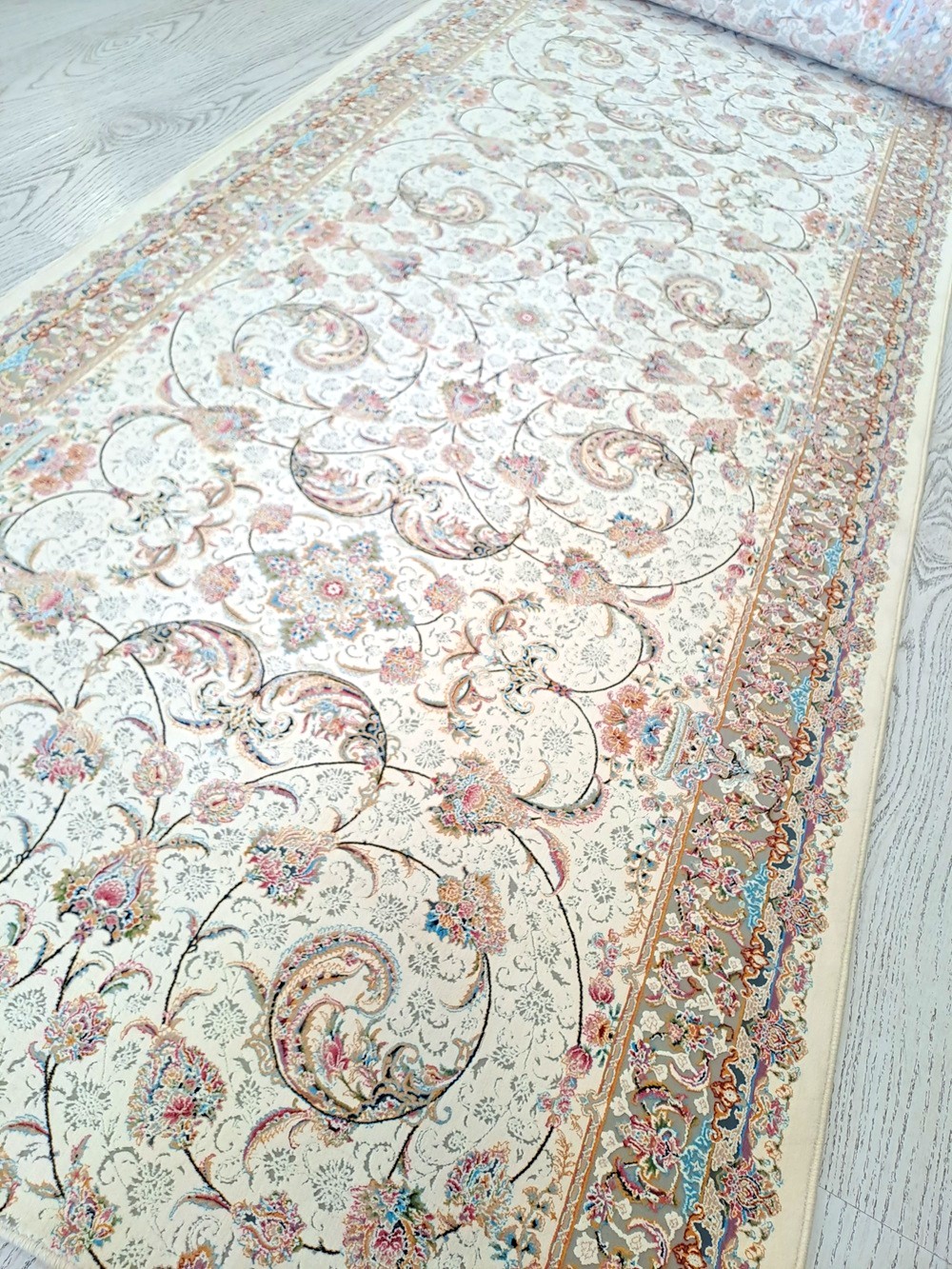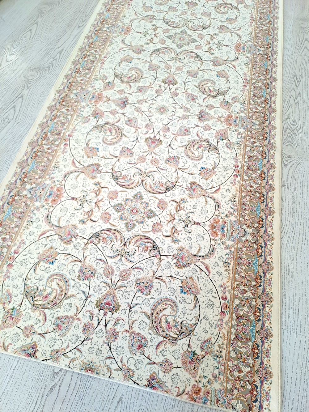 Este o traversă covor care se vinde la metru liniar pe fond ivoar cu codel clasic oriental colorat.