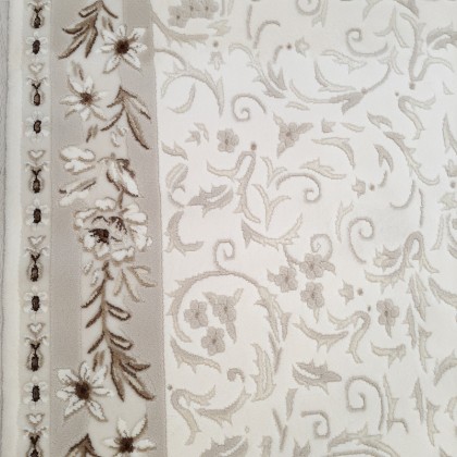 Traversă pe fond crem cu elemente vegetale bej. În părțile laterale, traversa are borduri bej cu elemente florale în 3D (relief) în nuanțe de crem, capuccino, maro brun.